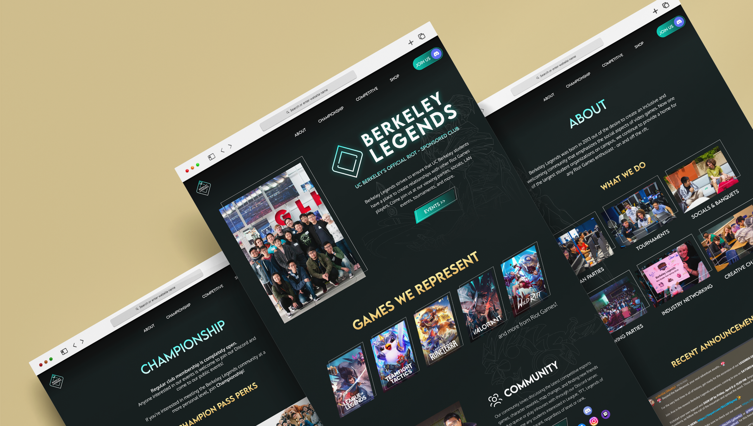 Responsive website redesign, for a Riot Games-focused gaming club at UC Berkeley.